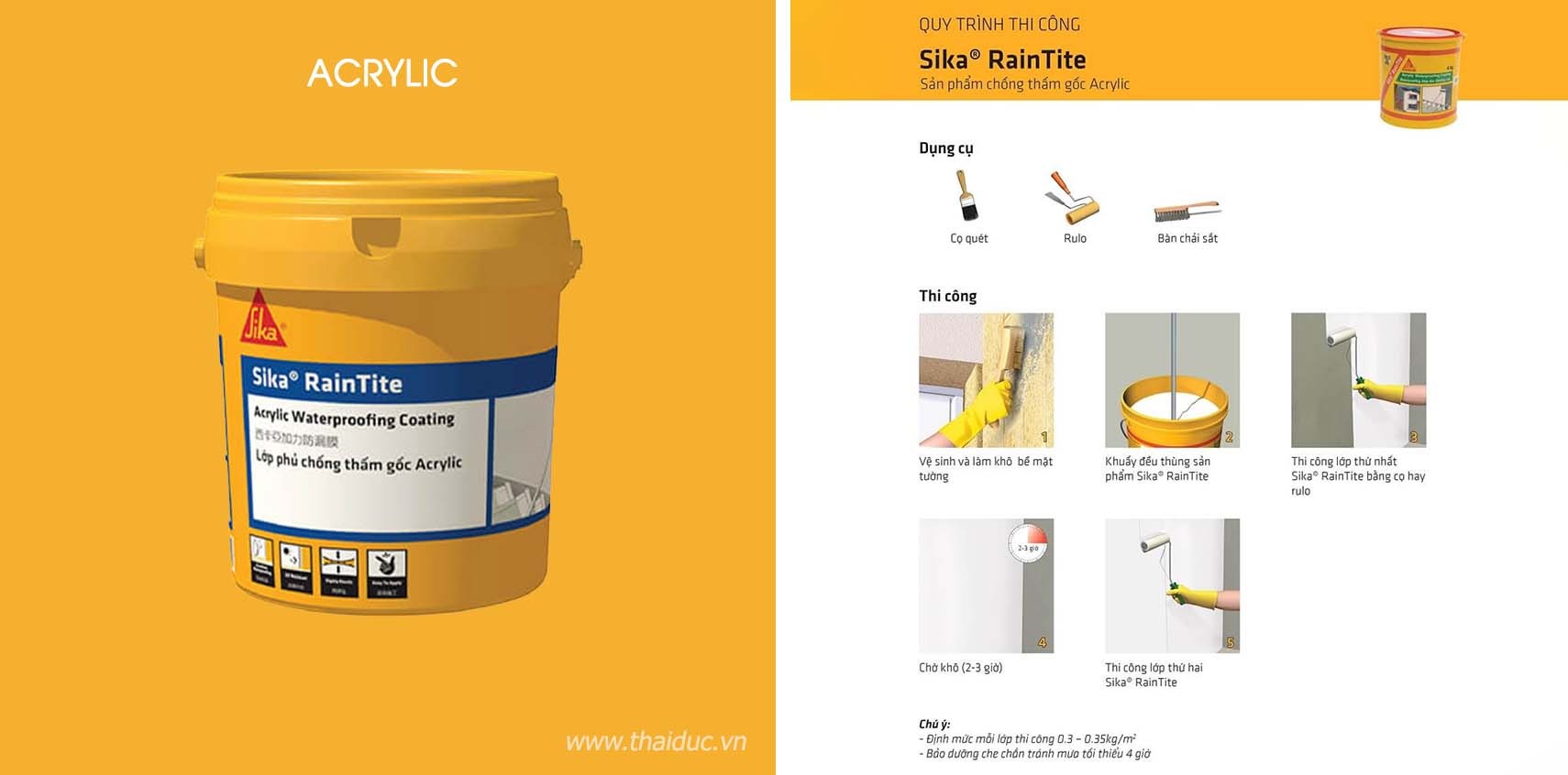 Acrylic là chất lỏng tinh khiết, không độc hại, không gây hại, không bắt lửa, có thể sử dụng ngay sau khi mở nắp, hòa tan trong nước, dễ kết hợp với các vết nứt trên tường để tạo thành lớp chống thấm chắc chắn, hiệu quả ứng dụng là lý tưởng và giá của nó tương đối thấp, thân thiện. Vì vậy nó phổ biến hơn trong các dự án chống thấm trang trí.