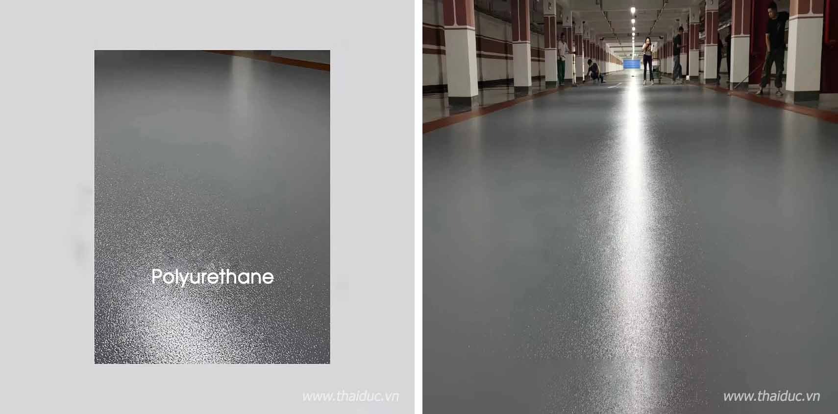 Polyurethane có thể sử dụng trong nhà và ngoài trời, độ dày sau khi sơn khoảng 3mm, độ căng đàn hồi trên 300%, vật liệu nền sẽ không bị nứt nên hiệu quả chống thấm nước là tốt nhất. Nhược điểm là có mùi nồng và không thân thiện với môi trường.