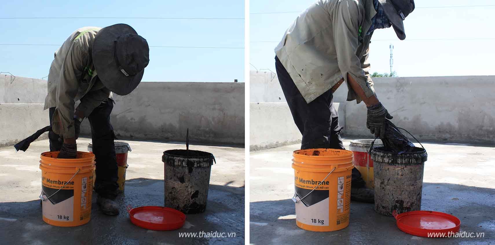 (20–50% về trọng lượng của SikaProof) vào thùng trộn. Trộn đều trong vòng 3 phút.
