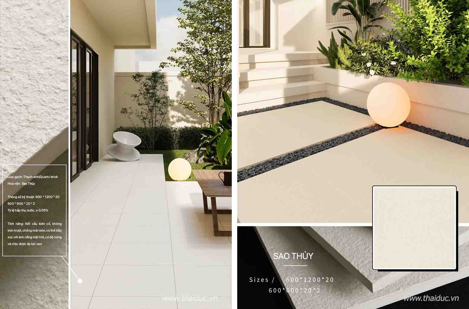 Phong cách tự nhiên mà mẫu gạch này mang lại giống như đang đi dạo trên bãi biển. Kết cấu và màu sắc của nó làm cho sân hiên trở nên thân thiện và sang trọng hơn.