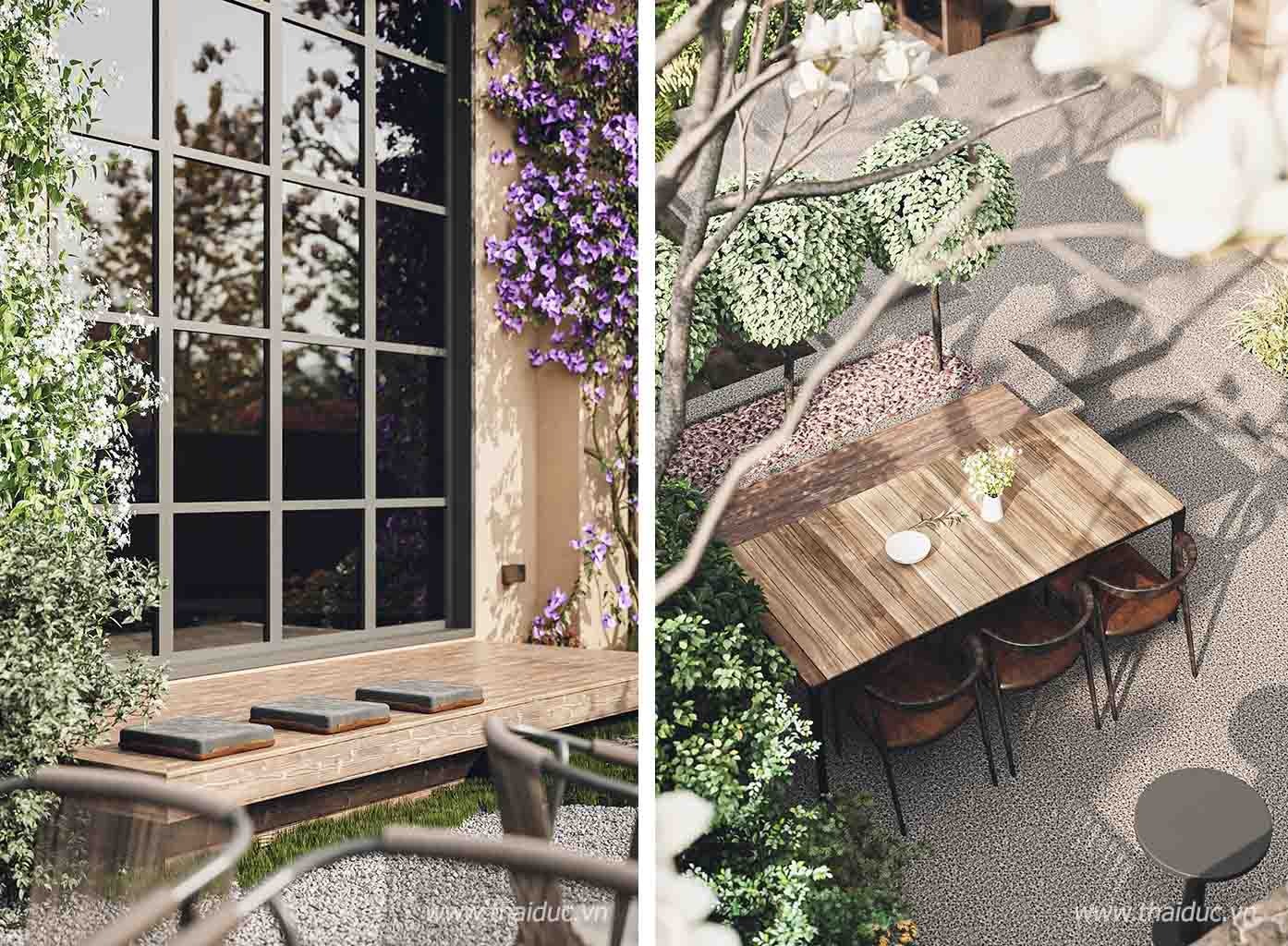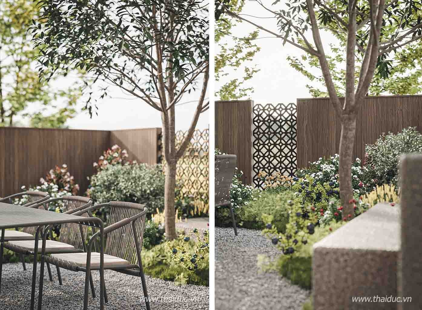 Ở các khu vực ngoại thành, trồng cây để giảm bớt diện tích biệt thự, tạo cảm giác đoàn tụ.