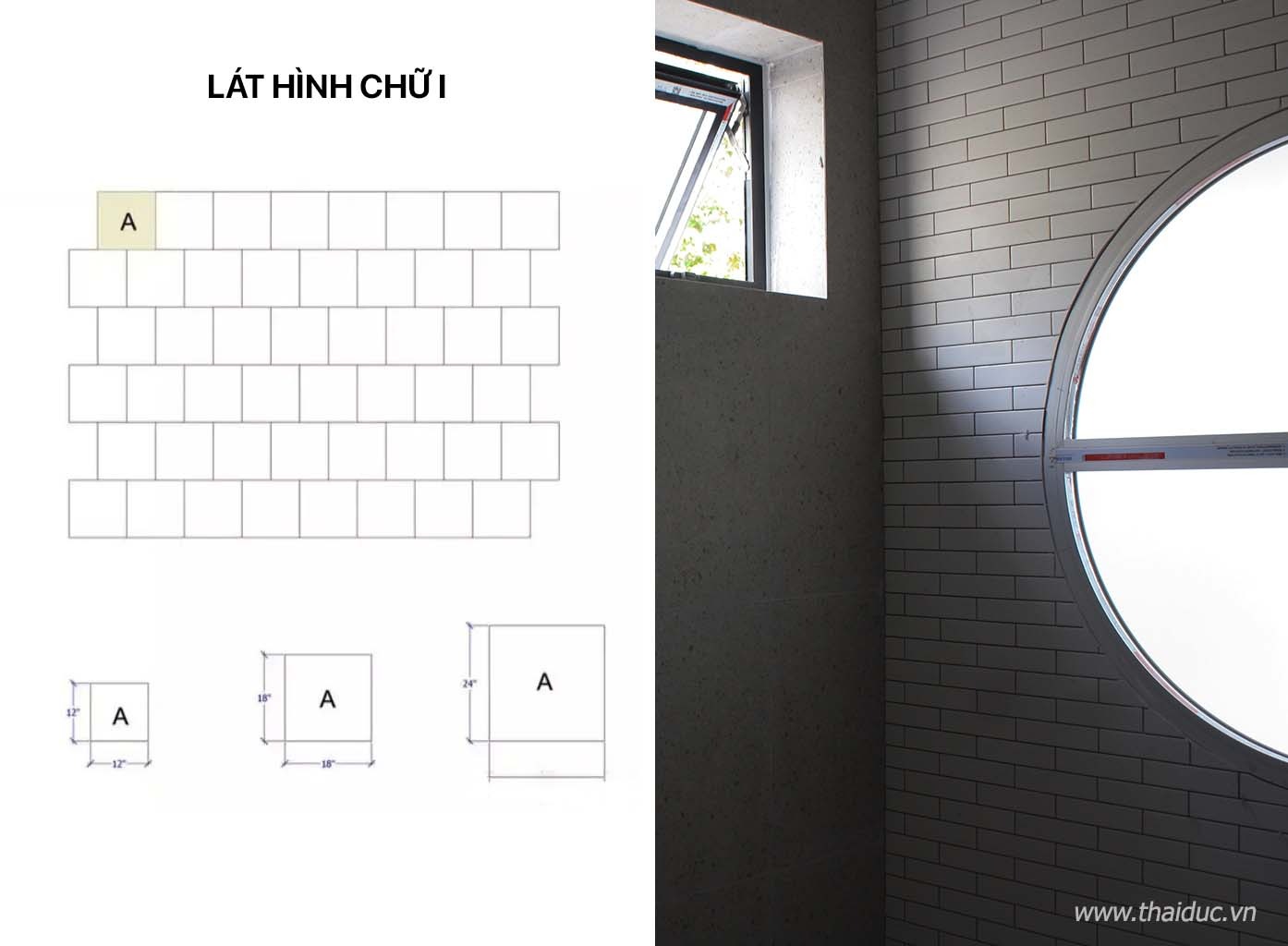 Lát hình chữ I giống như lát gạch, cân đối và có thể làm cho hiệu ứng lát của gạch men trông ba chiều hơn.