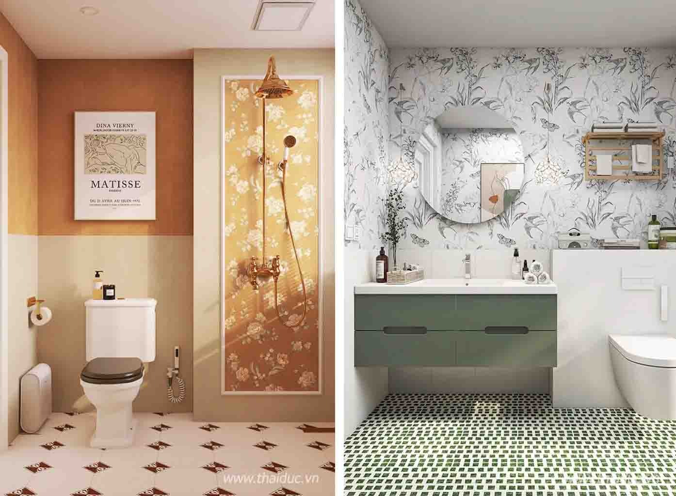 Mọi thứ sẽ khác khi chúng ta biết phối màu, thay vì lát những ô vuông đơn điệu, sắp xếp so le các viên gạch men màu và họa tiết có thể tạo cho không gian một cảm giác sôi động .