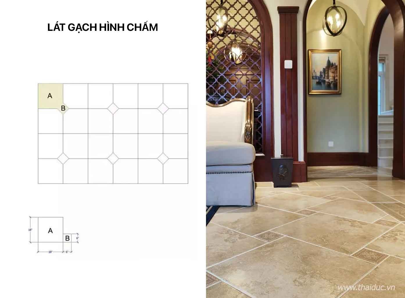 Mẫu chấm có lẽ là phương pháp lát phổ biến nhất với các kích cỡ khác nhau và cấu trúc của nó không phức tạp như các phương pháp khác.