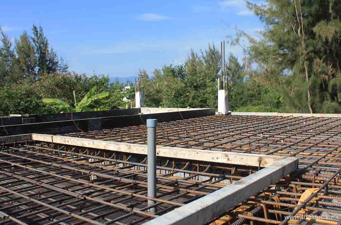 ‣ Khi đổ bê tông dầm người thợ cần lưu ý đến chiều cao của dầm không nên để vượt quá 50cm. Trong trường hợp này thì hay đổ dầm cùng với bản sàn.
