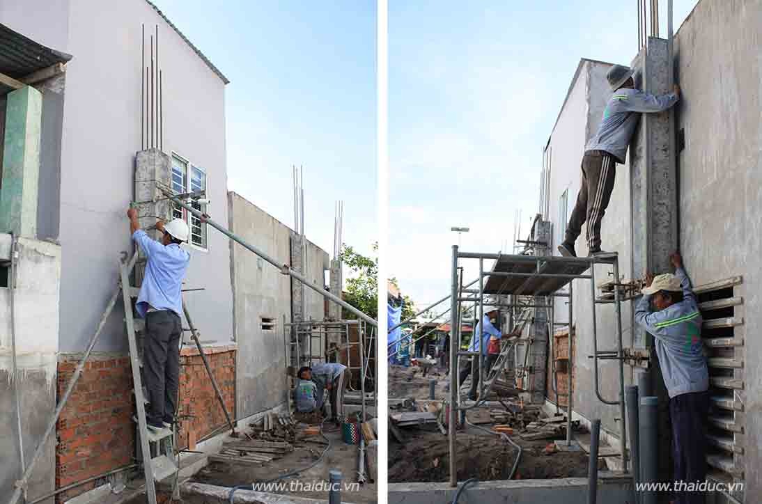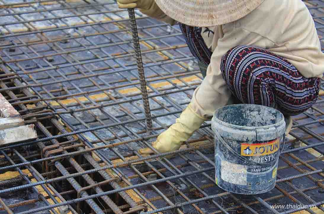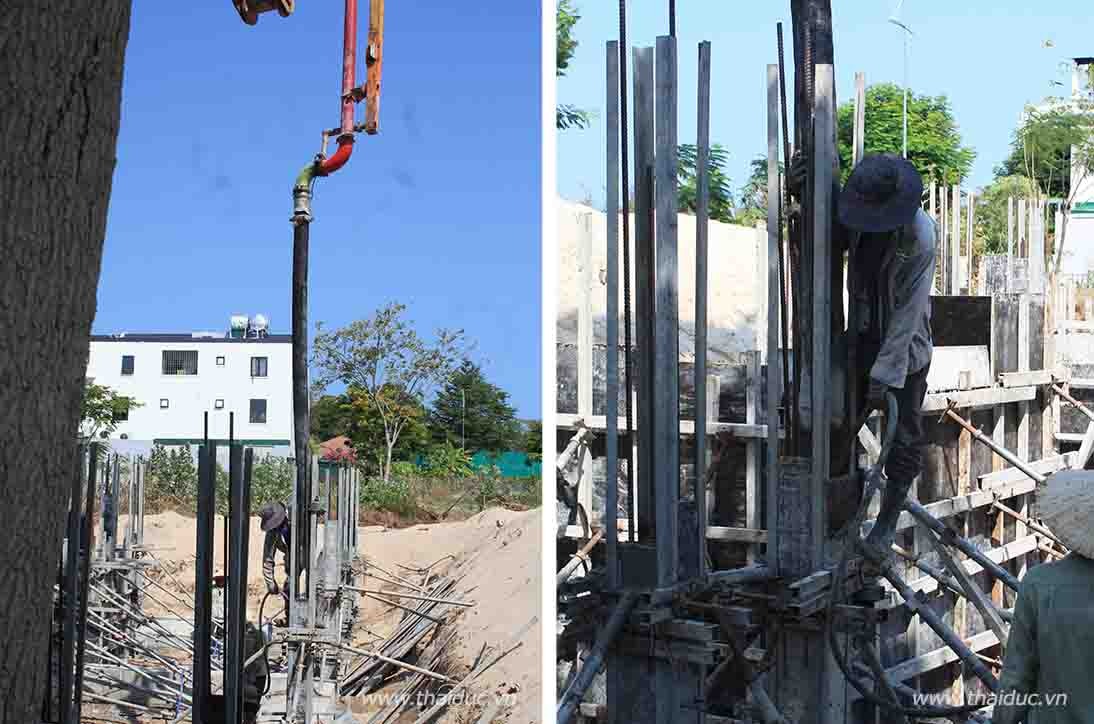 Lưu ý: Khi thực hiện cần phải đảm bảo theo đúng tiêu chuẩn đầm dùi thật kỹ để cho bê tông phân bố đều trong kết cấu.