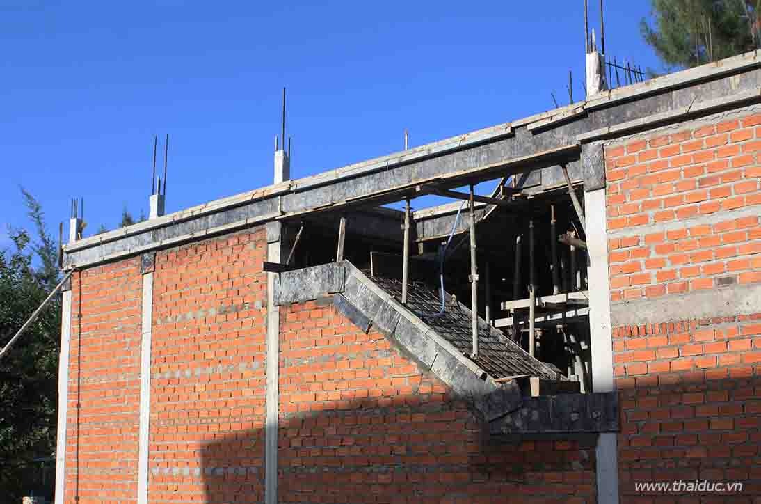‣ Đổ khối dầm và bản sàn sẽ được liên kết với cột, đổ cột tới độ cao cách mặt đáy dầm một khoảng chừng 3-5cm. Sau đó dừng lại chừng 1 giờ để bê tông co ngót rồi mới thực hiện đổ tiếp.