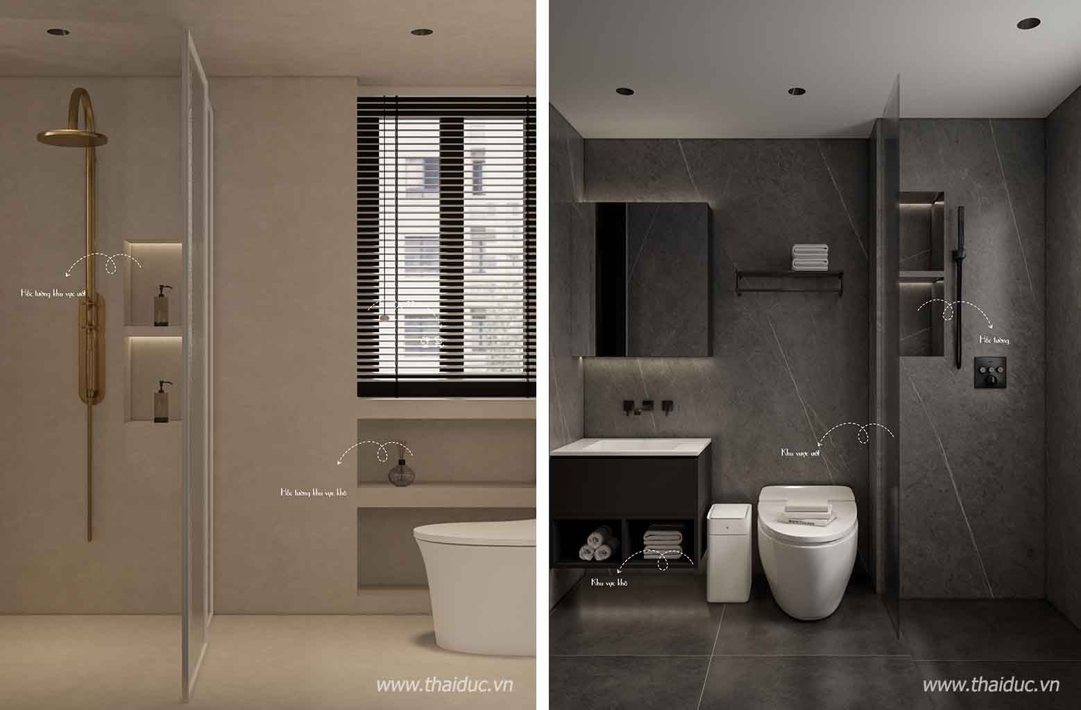 Khu vực ướt phải thấp hơn vài phân để ngăn nước tràn vào khu vực khô, gây ẩm ướt