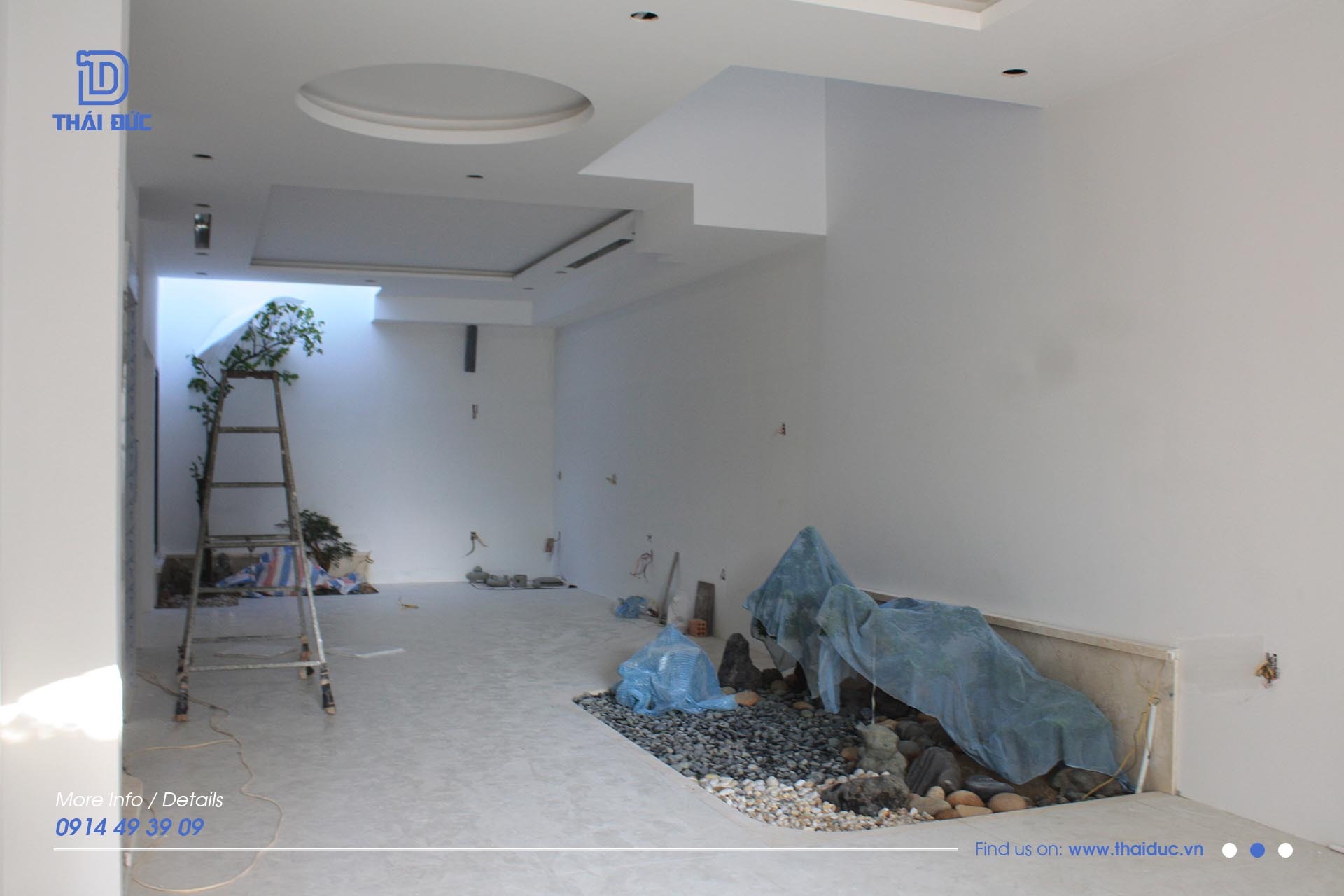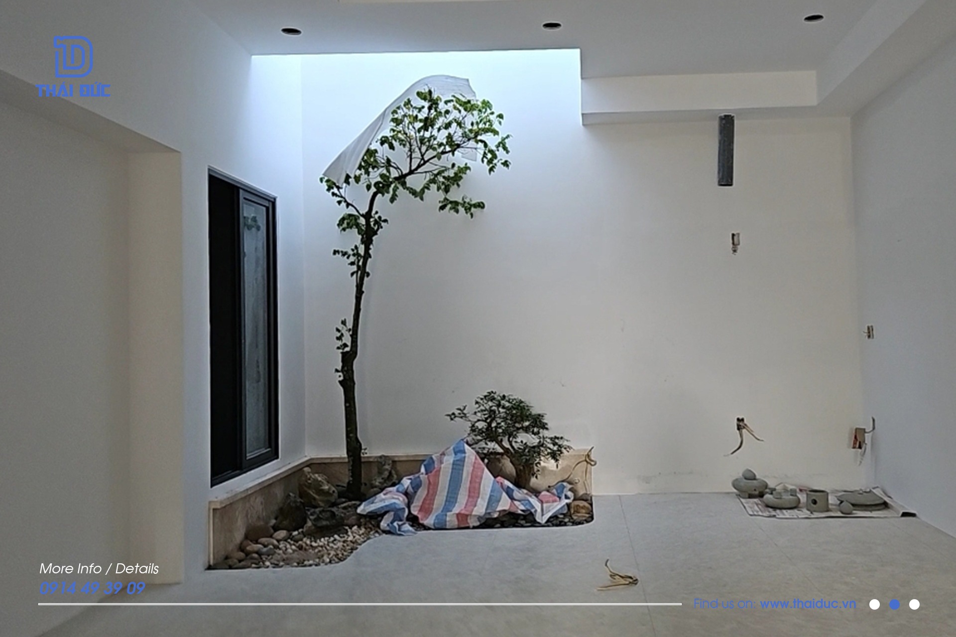 Không gian ba tầng bao gồm các chức năng sinh hoạt, phòng ngủ và giải trí, các khu vực chức năng được thiết kế và cân nhắc hợp lý, tạo nên một khoảng lặng chữa lành với tầm nhìn không bị cản trở, đồng thời giếng trời cũng mang lại ánh sáng và luồng sinh khí mát mẻ, để các thành viên trong gia đình sinh hoạt thoải mái mà không có cảm giác ngột ngạt, bí bách.