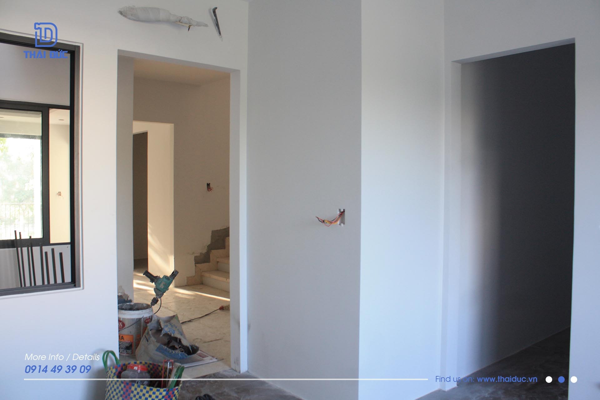 Chất liệu cửa nhôm kính, sơn latex ấm áp... toàn bộ ngôi nhà được bao quanh bởi gam màu ấm áp của các chất liệu khác nhau, mang đến cho người nhìn trải nghiệm thị giác vô cùng thoải mái và không bị gò bó.