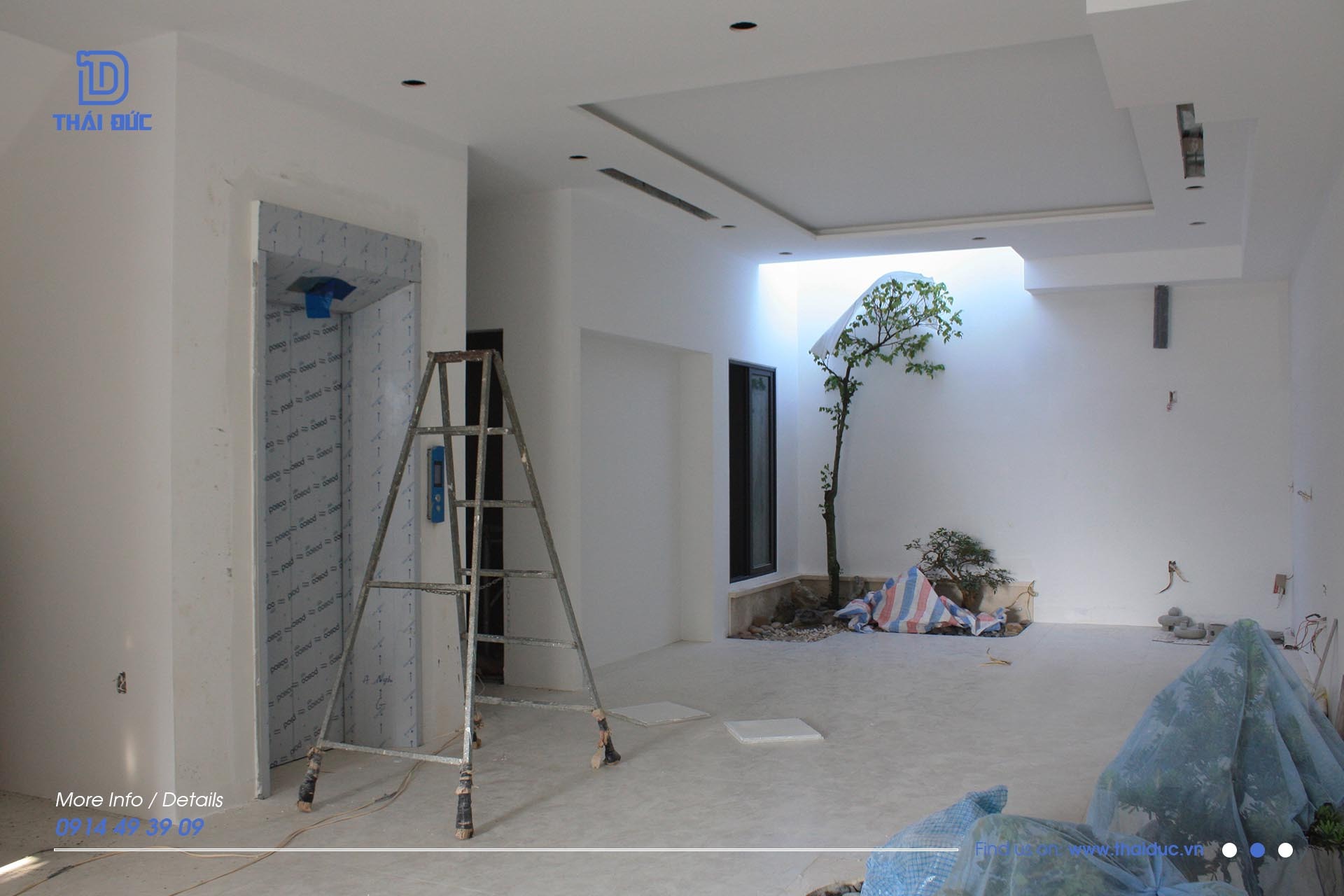 Thiết kế vị trí các phòng, cầu thang, thang máy cũng vô cùng hợp lý, tiện lợi cho người lớn tuổi di chuyển lên xuống, hàng lang rộng rãi, thoải mái, dễ chịu hơn so với lối đi chật hẹp ở thành phố. Đồng thời bổ sung thêm một số đèn cách điệu xung quanh là điểm nhấn tạo sự trầm ấm và thư giãn cho không gian.