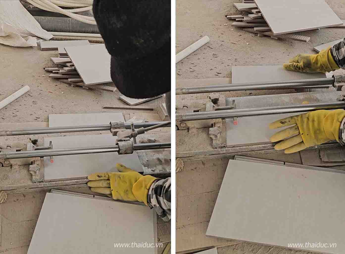 Đối với những đường cong, góc cạnh cần tiến hành đo đạc để cắt gạch chính xác