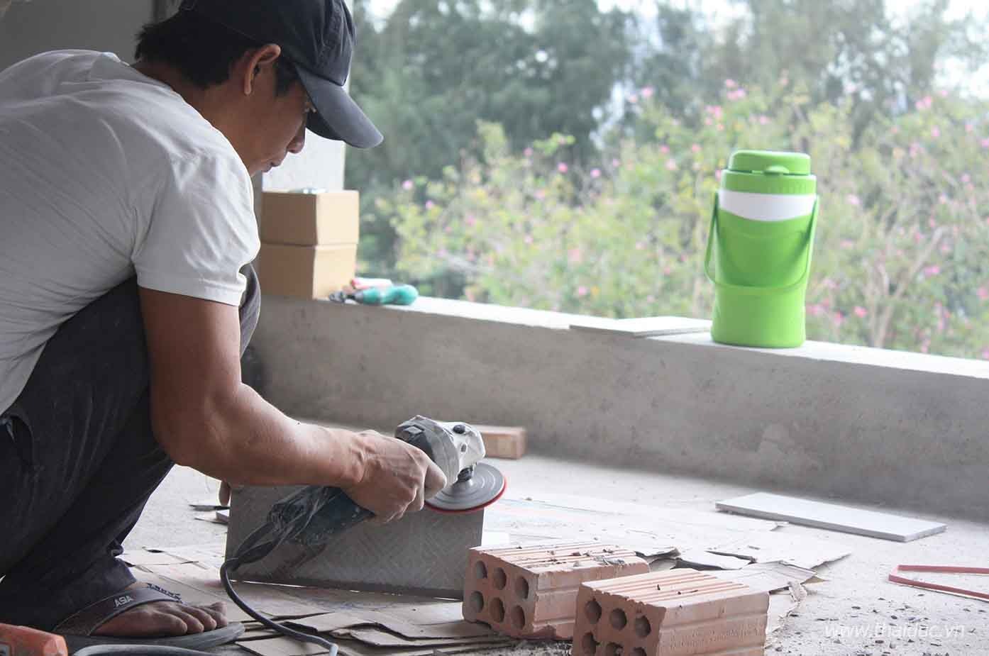 Cẩn thận mài góc để bề mặt cạnh của gạch được đẹp và dễ lắp, ốp