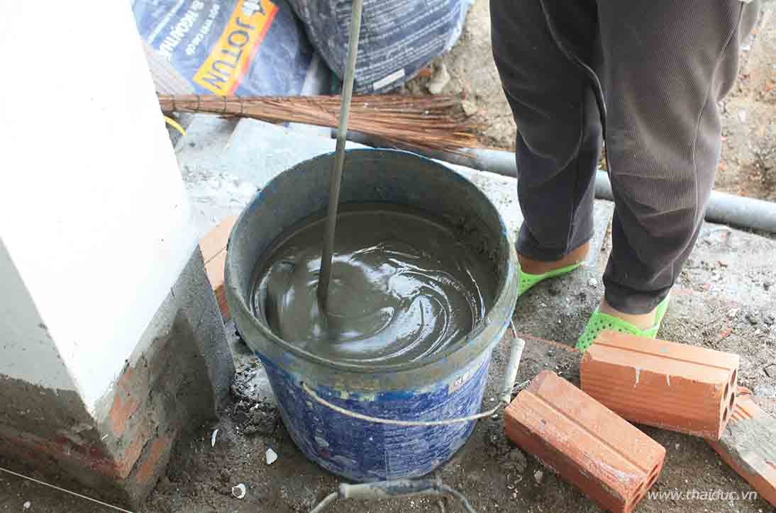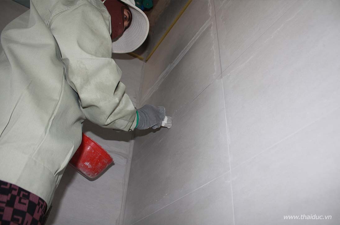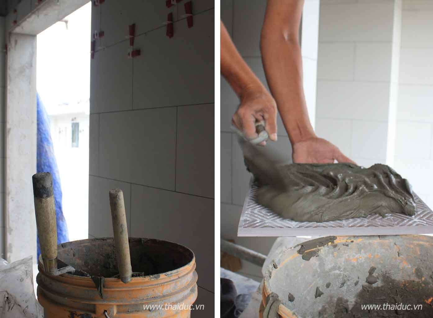 Thái Đức khuyến nghị bạn nên phủ lớp vữa lên cả mặt bằng cốt nền và trên bề mặt xương gạch để hạn chế bọt khí và tạo độ liên kết chắc chắn.
