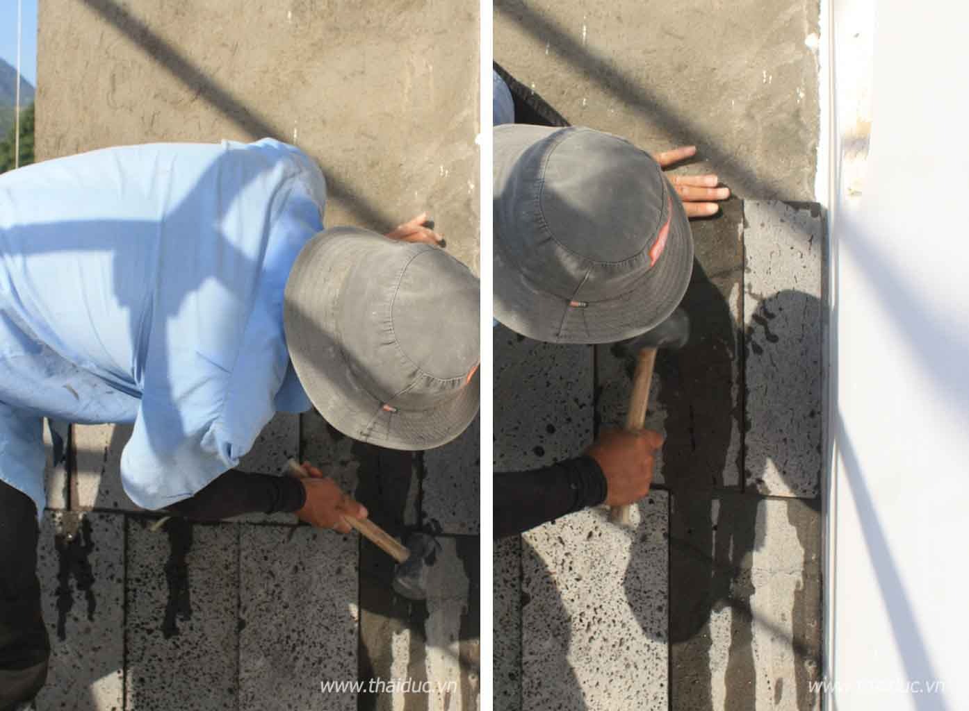 Đặt từng viên gạch lên lớp vữa một cách chính xác, đều đặn và theo đúng kích thước đã do