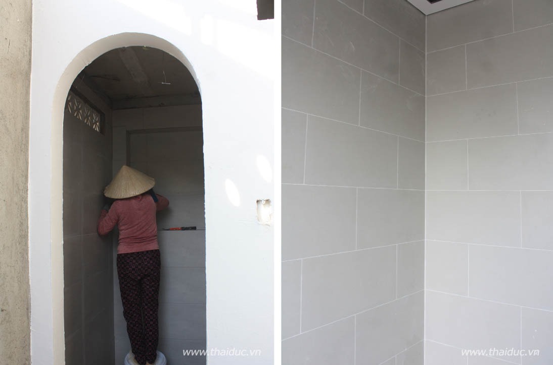 Đây là bước quan trọng nhất, đòi hỏi sự tỉ mỉ, Thái Đức sẽ hướng dẫn bạn ốp lát gạch mộ cách chi tiết nhất.