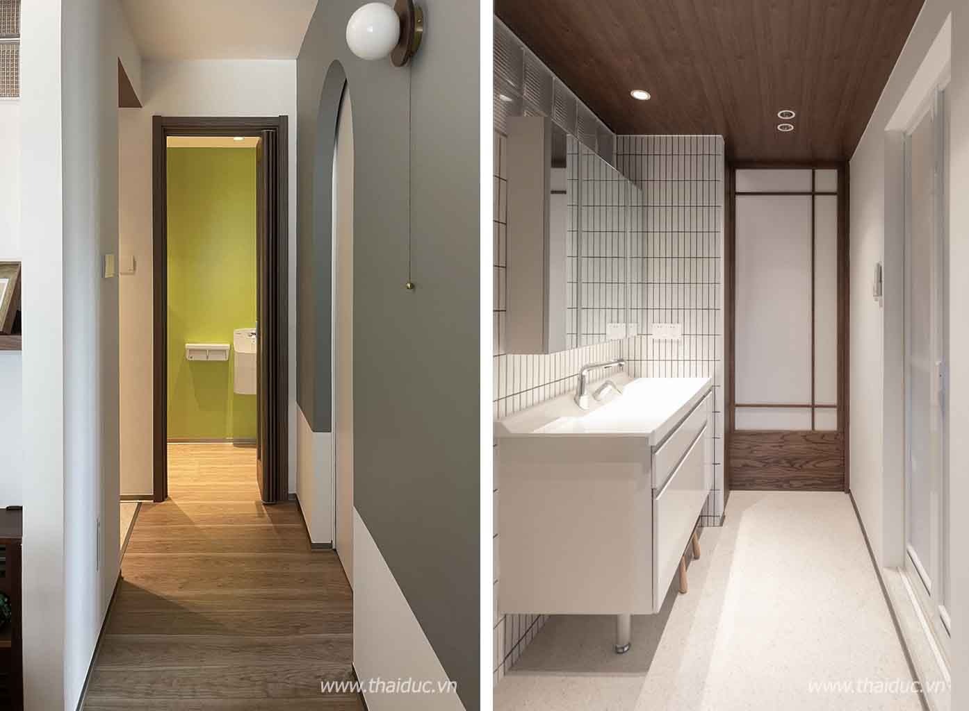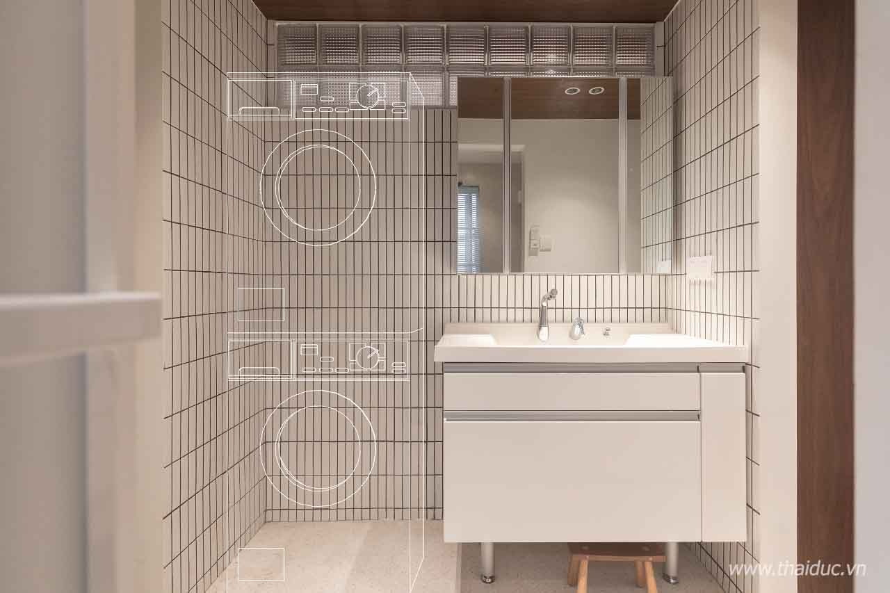 Hơn nữa, việc sử dụng gạch men trắng sáng và thiết kế vách ngăn bằng kính trong suốt có thể giải quyết vấn đề này và cải thiện trực quan những khuyết điểm do không đủ ánh sáng.