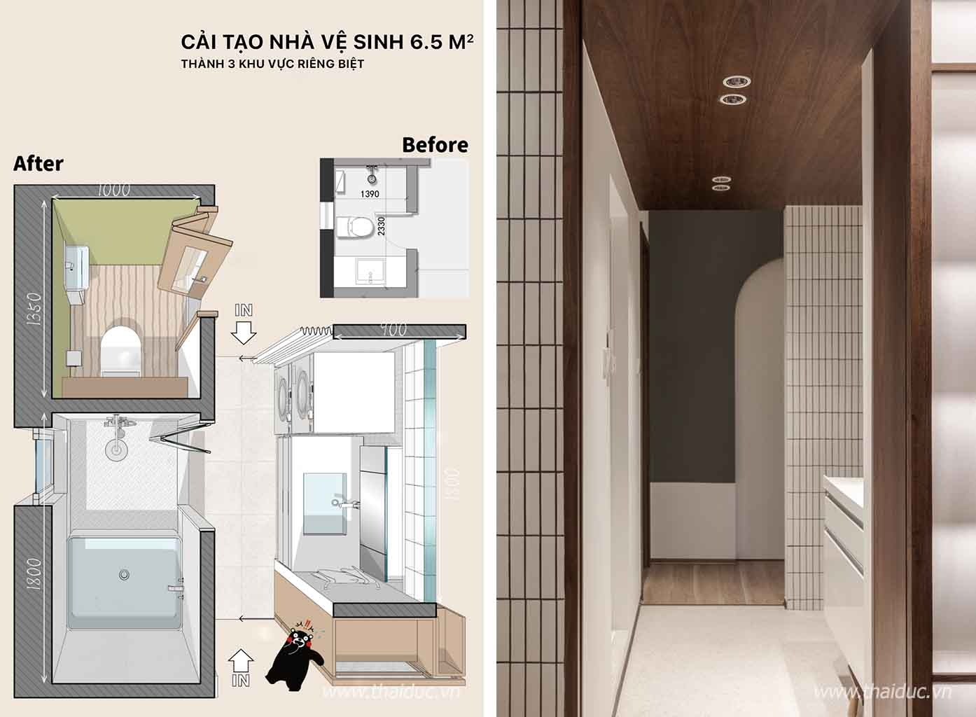 Nhưng trước đây, những ngôi nhà cũ chưa có ý thức “tách khô và ướt” nên hầu hết được ngăn cách bằng những tấm rèm tắm đơn giản. Cách làm này tất nhiên là tốt hơn không, nhưng nó không những không thể cách ly hơi nước một cách hiệu quả mà còn có thể dễ dàng sinh sản vi khuẩn, khiến độ ẩm và mùi hôi không thể tránh khỏi.