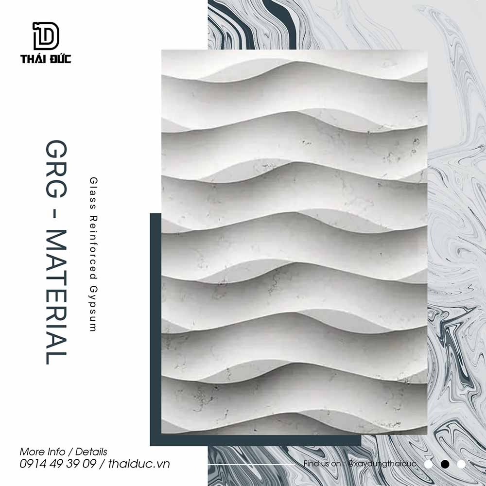 Chất liệu GRG là sự kết hợp hoàn hảo giữa chức năng và thời trang, được sử dụng rộng rãi trong lĩnh vực thiết kế nội thất và trang trí công trình nhờ ưu điểm nhẹ, độ bền cao, tính thẩm mỹ cao và bảo vệ môi trường.