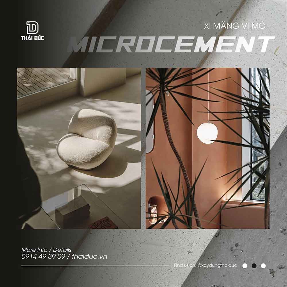 Microcement là vật liệu bề mặt được trộn với xi măng, nhựa gốc nước, bột màu khoáng,… Là sản phẩm hỗn hợp khoáng vô cơ. Chất liệu có vẻ thô ráp nhưng thực ra rất tinh tế và khiến các nhà thiết kế phải mê mẩn.