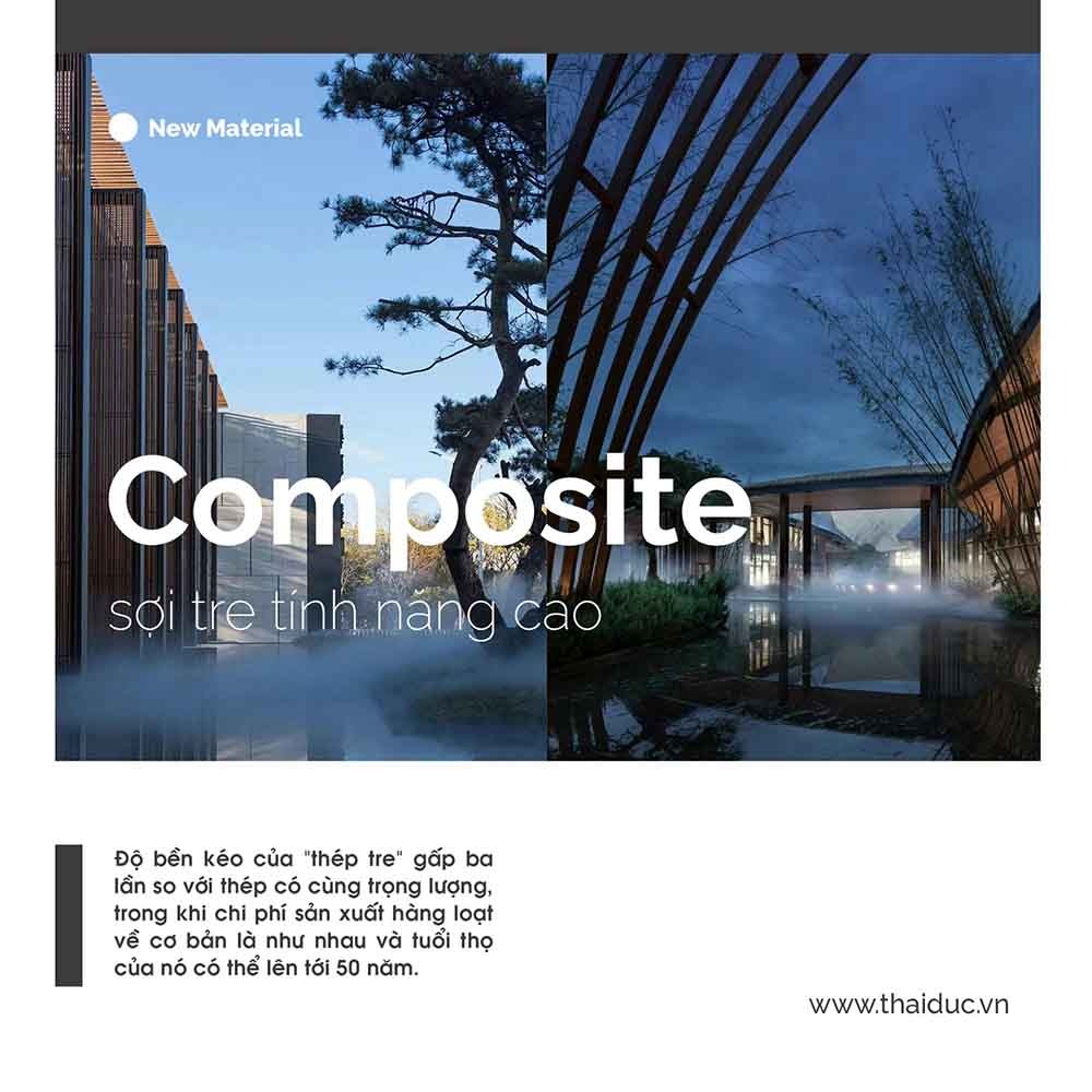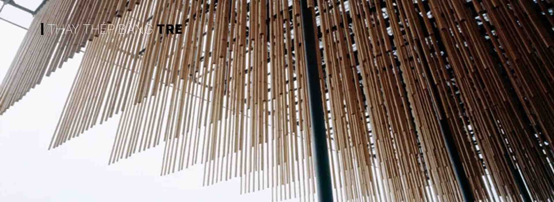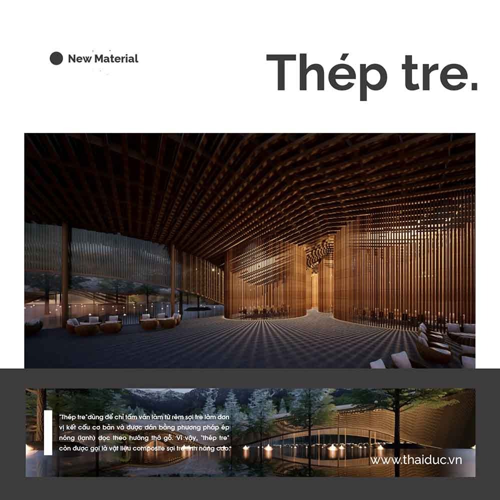 Đó là thép tre, một loại vật liệu xây dựng mới nổi trong những năm gần đây. Chất liệu này nhìn giống gỗ, có cảm giác như thép nhưng thực chất lại là tre.